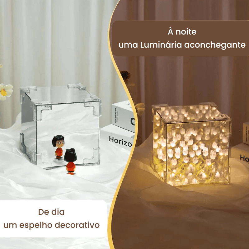 Com sua luz suave, combinada ao efeito de espelho infinito , ela cria uma atmosfera mágica que transforma qualquer ambiente.